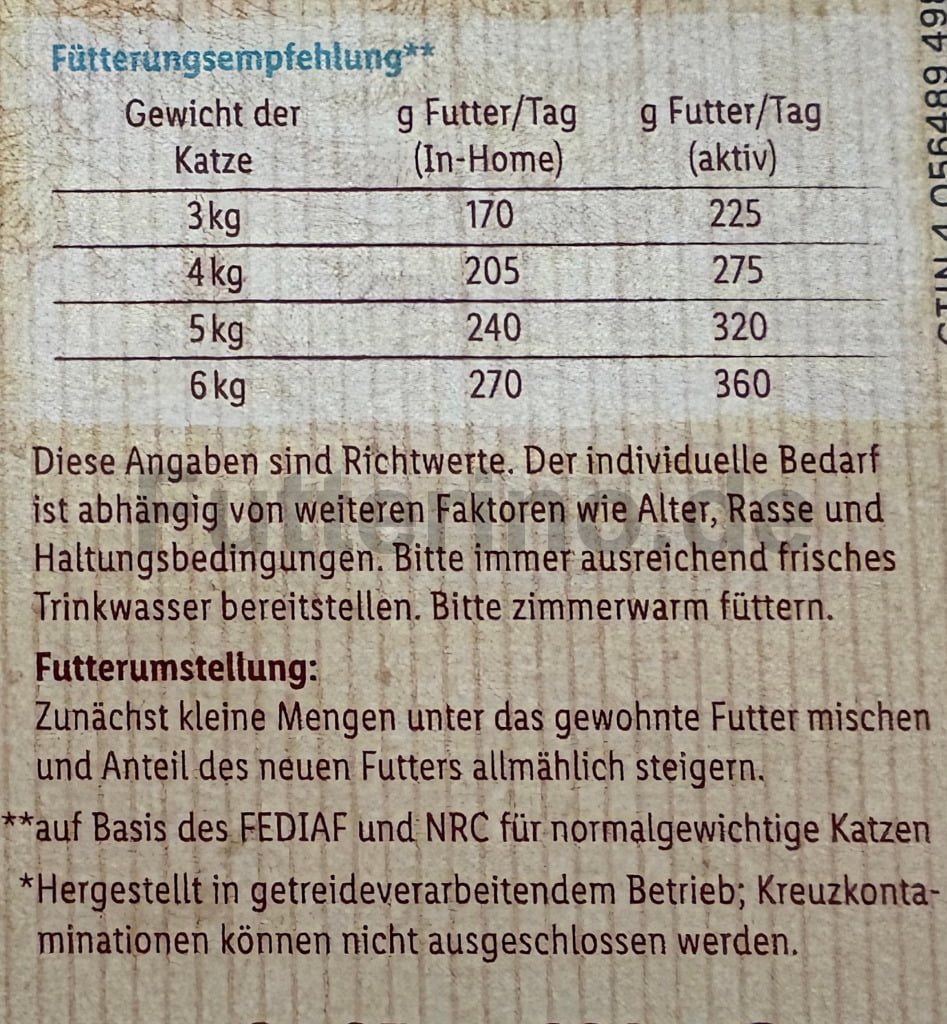 Bitte beachte, dass der Energiebedarf deiner Katze Schwankungen unterliegt und die berechnete Futtermenge nichts über die Nährstoffversorgung deiner Fellnase aussagt.