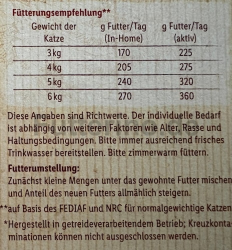 Bitte beachte, dass der Energiebedarf deiner Katze Schwankungen unterliegt und die berechnete Futtermenge nichts über die Nährstoffversorgung deiner Fellnase aussagt.