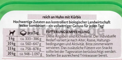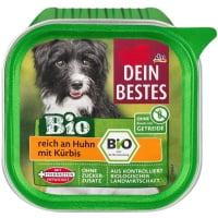 DEIN BESTES Bio reich an Huhn mit Kürbis -Alleinfuttermittel für ausgewachsene Hunde mit Huhn und Kürbis aus kontrolliert biologischer Landwirtschaft.