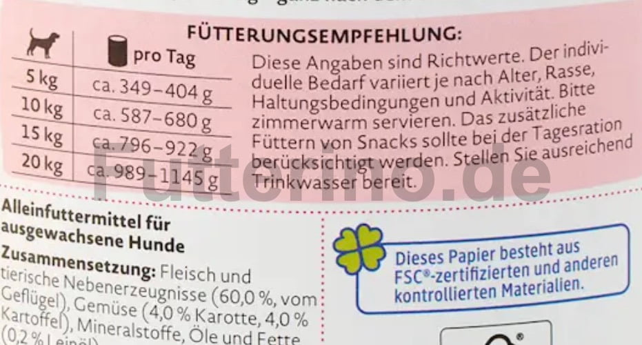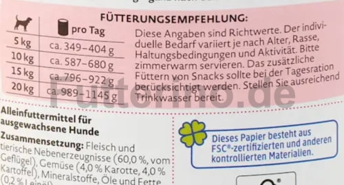 Tipp! Mit unserem Futterrechner kannst die Futtermenge für deinen Hund berechnen. Die Berechnung erfolgt anhand des benötigten Energiebedarfs deiner Fellnase und dem Energiegehalt des Futters, auf Grundlage der analytischen Bestandteile.