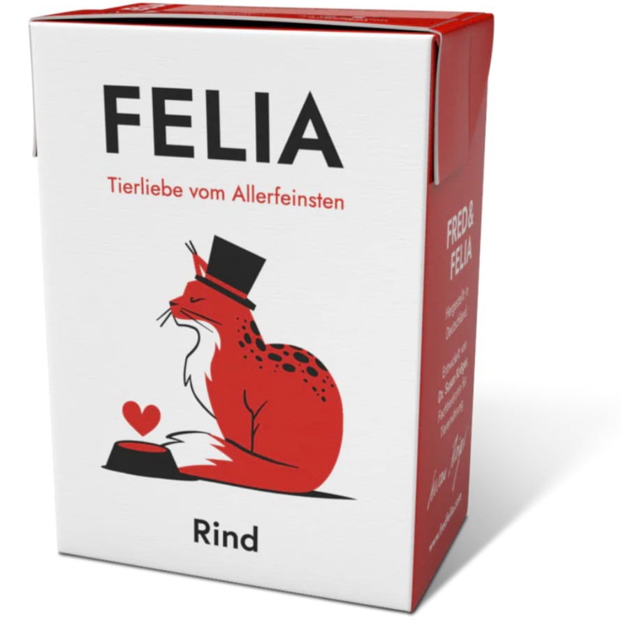 Natürliches Rind-Menü für Katzen - FELIA Rind ist ein hochwertiges Nassfutter mit hohem Fleischanteil, das Katzen eine schmackhafte und verträgliche Mahlzeit bietet. Die sorgfältig ausgewählten Zutaten sorgen für natürliche Ernährung ohne künstliche Zusätze.