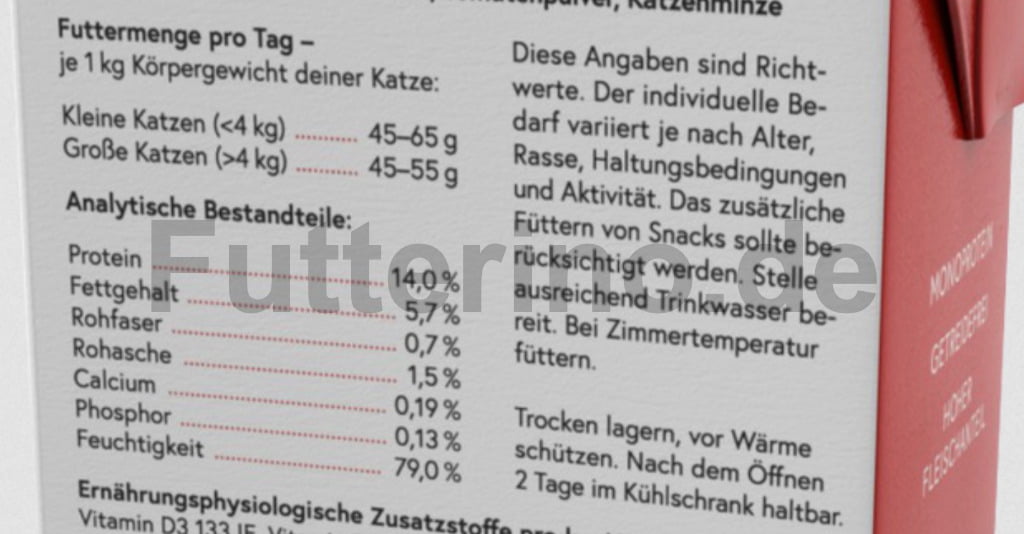 Tipp! Mit unserem Futterrechner kannst die Futtermenge für deine Katze berechnen. Die Berechnung erfolgt anhand des benötigten Energiebedarfs deiner Fellnase und dem Energiegehalt des Futters, auf Grundlage der analytischen Bestandteile.