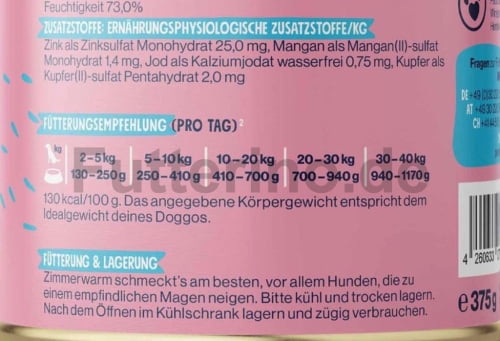 Tipp! Mit unserem Futterrechner kannst die Futtermenge für deinen Hund berechnen. Die Berechnung erfolgt anhand des benötigten Energiebedarfs deiner Fellnase und dem Energiegehalt des Futters, auf Grundlage der analytischen Bestandteile.