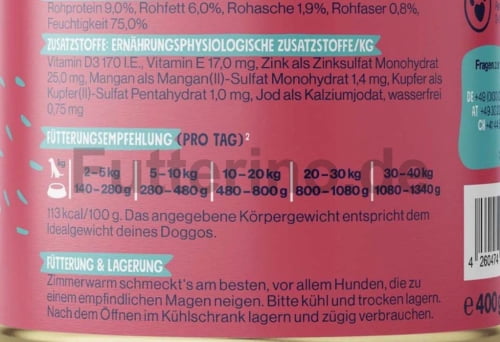 Tipp! Mit unserem Futterrechner kannst die Futtermenge für deinen Hund berechnen. Die Berechnung erfolgt anhand des benötigten Energiebedarfs deiner Fellnase und dem Energiegehalt des Futters, auf Grundlage der analytischen Bestandteile.