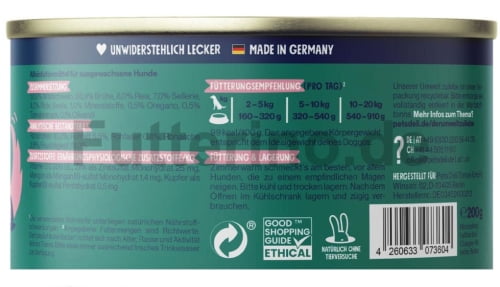 Mit Roter Bete und Sellerie kommt noch eine Extraportion Frische in den Napf – und ein ordentlicher Farbklecks gleich dazu. Ein Menü mit hochwertigen Zutaten, auf das sich dein Doggo jeden Tag aufs Neue freuen kann.