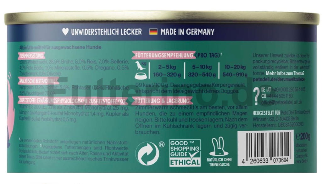 Du hast eine Frage zu Pets Deli Classic Wildschwein? Das Futterino-Team und die Community helfen dir gern weiter.